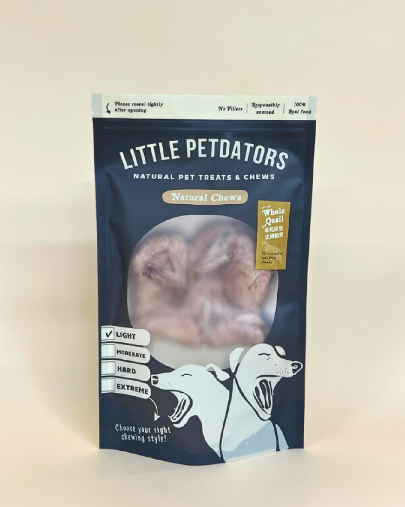 凍乾鵪鶉酥脆且易於咀嚼,非常適合各種體型的狗和貓。